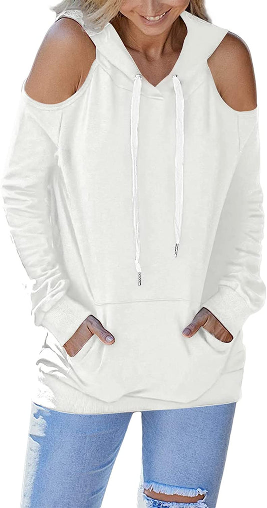 Women's Cold Shoulder Hooded Sweatshirt Pullover Hoodie Cut Out Tops